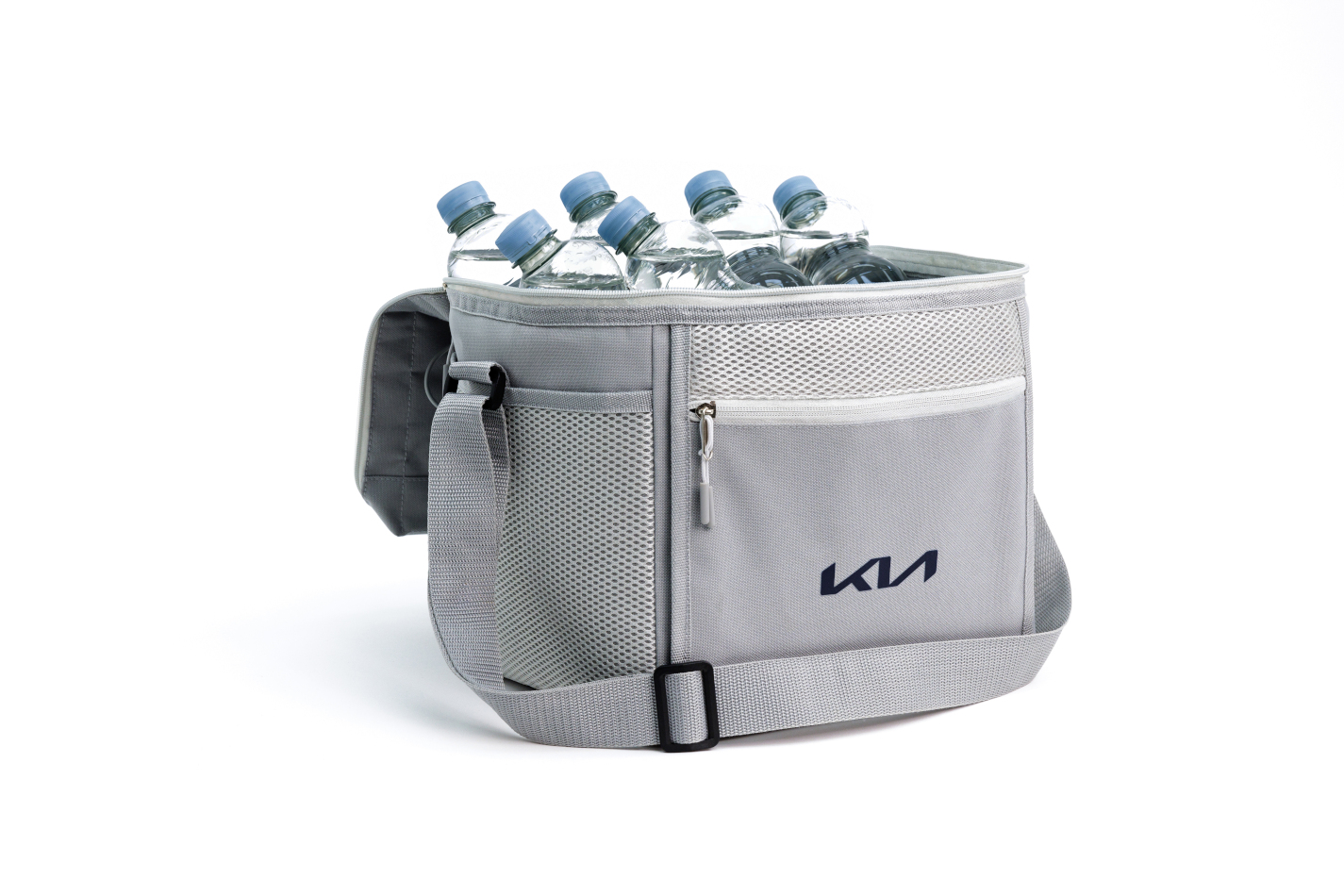 Twoja Kia to najlepszy towarzysz zabawnych wycieczek i pikników. Ta szara, izolowana torba Kia z regulowanym paskiem na ramię pomaga utrzymać świeżość jedzenia i zimne napoje, gdy jesteś w drodze. Wewnętrzna komora mieści do 16 litrów, nie licząc małej zewnętrznej kieszeni.